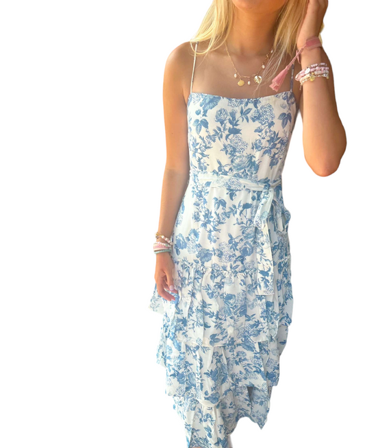 Elegant Paisley High-Slit Midi Dress with Ruffled Layers
