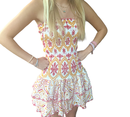 Floral Fiesta Babydoll Dress in Orange & Pink