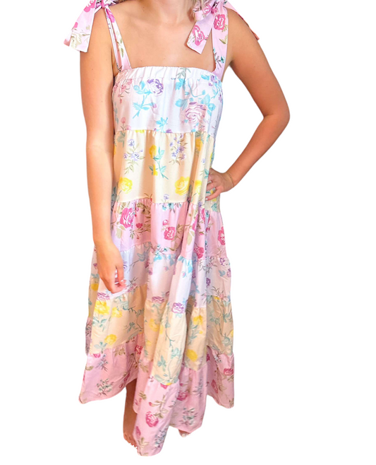 Floral Fantasy: The Layered Tie-Back Mini Dress
