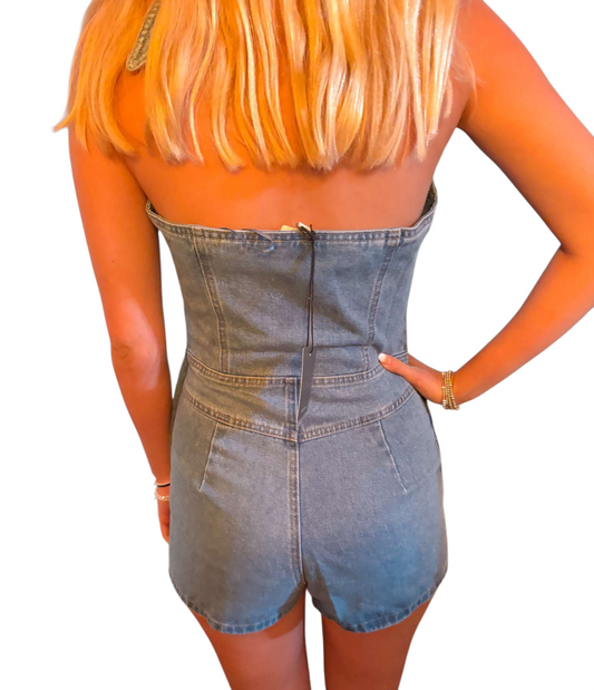 Sky Blue Eyelet Strapless Romper