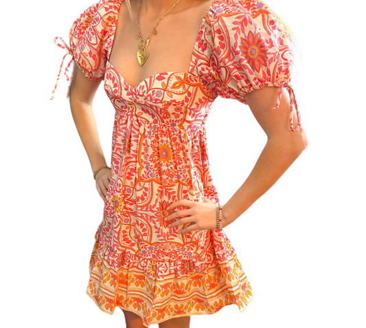 Floral Fiesta Babydoll Dress in Orange & Pink
