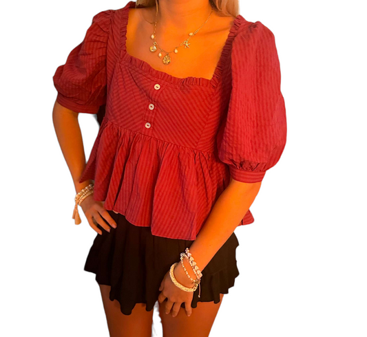Maroon Ruffled Babydoll Top for Game Day Fun