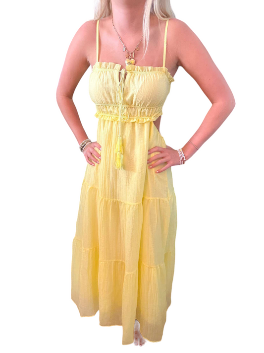 Boho Chic U-Neck Maxi Dress with Side Slit and Cut-Out Details