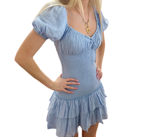 Cali Chic Puff Sleeve Mini Dress in White Eyelet