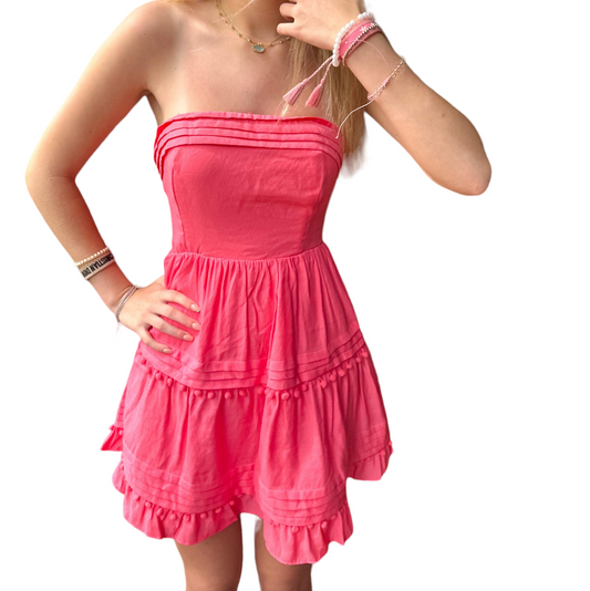 Gia Elegant Strapless Smocked Ruffle Dress in Classic White