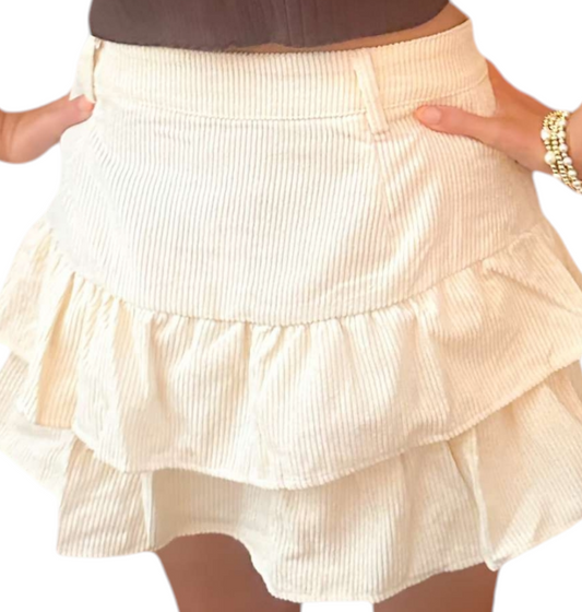 Creamy Double Tiered Curdoury Mini Skort
