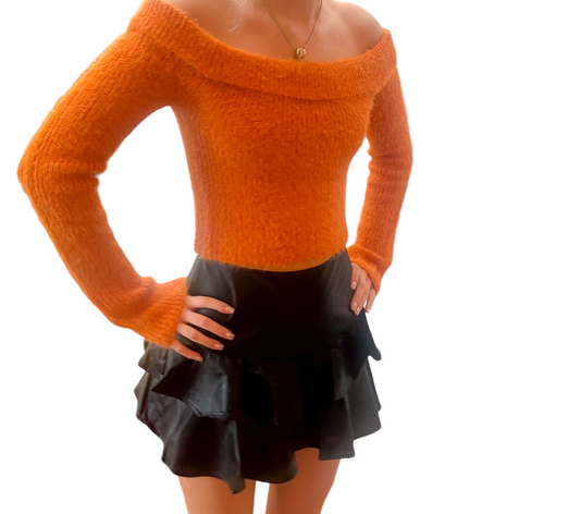 Chic Black Faux Leather Mini Skort with Hidden Shorts