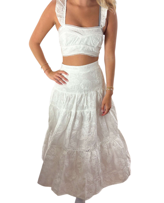 Cali Chic Puff Sleeve Mini Dress in White Eyelet