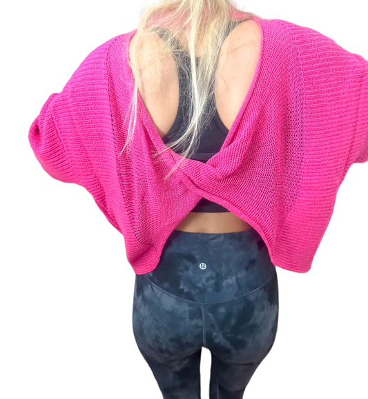 "Lucy Sweater" Crimson Lace-Up Cropped Sweater