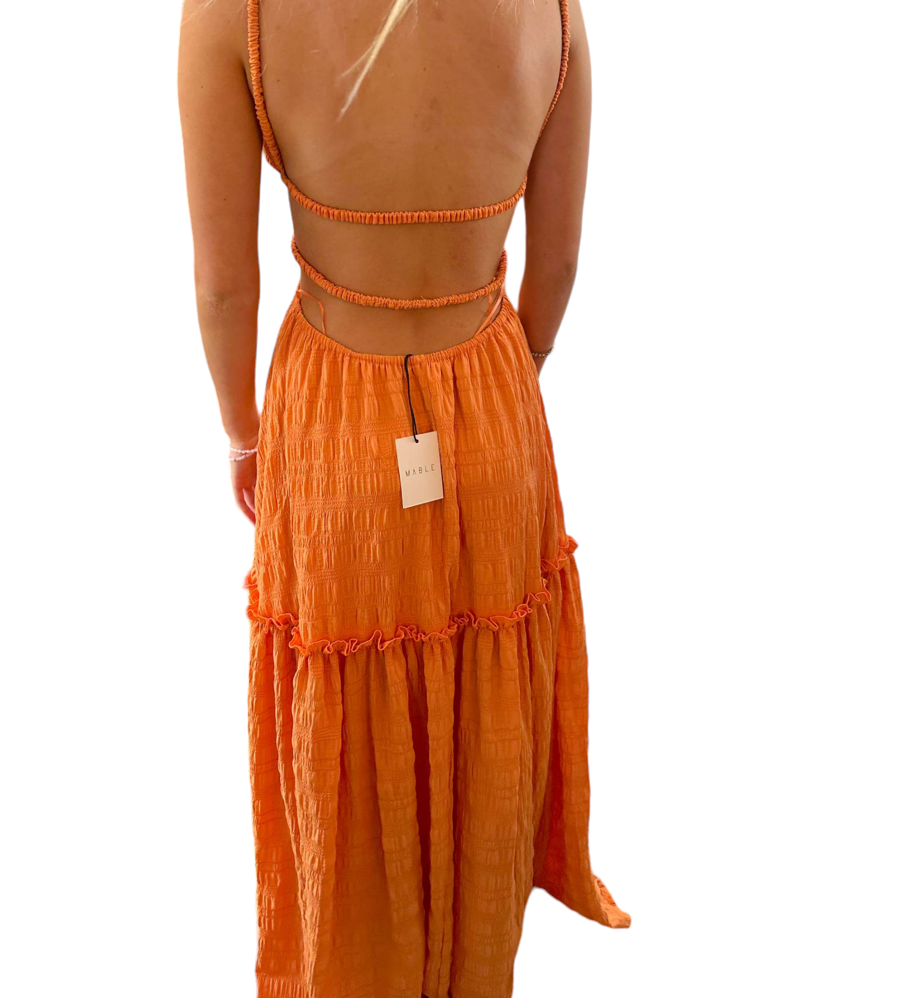 Vibrant Orange Spaghetti Strap Cut-Out Maxi Dress