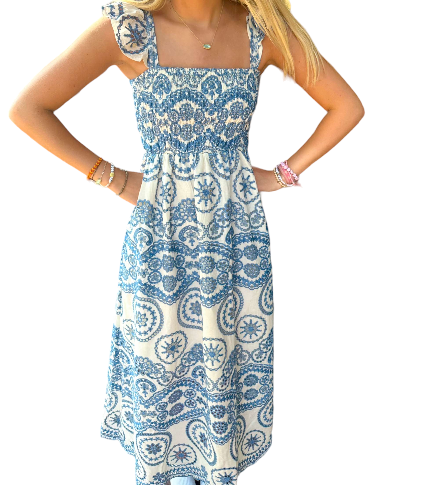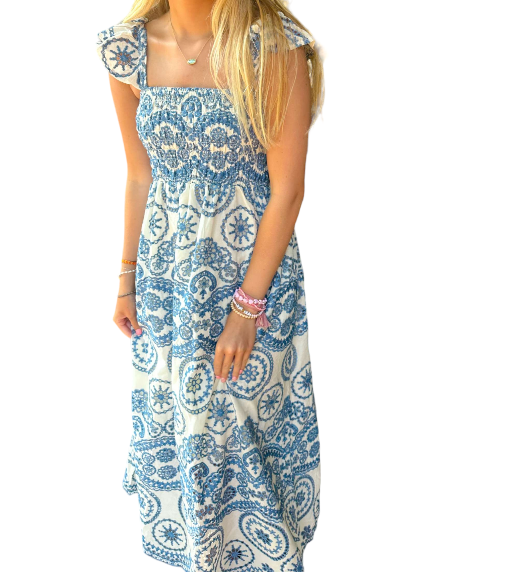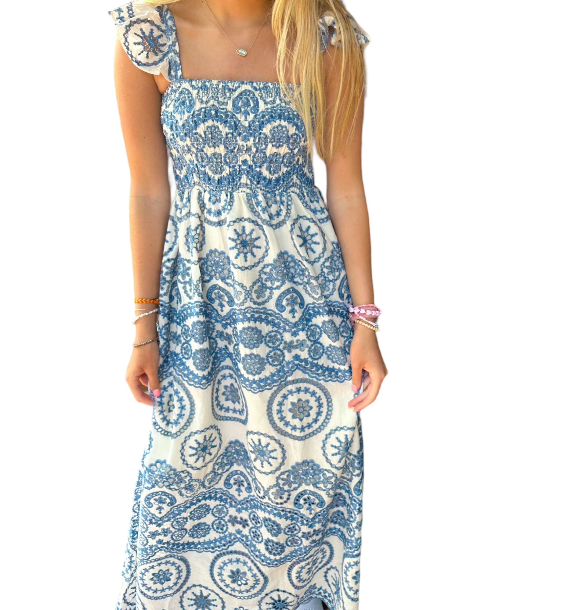 Step into elegance with the Gracie Dress, a stunning blue embroidered maxi dress that effortlessly combines bohemian charm with modern sophistication. This exquisite piece is designed to make you feel confident and beautiful on any occasion.