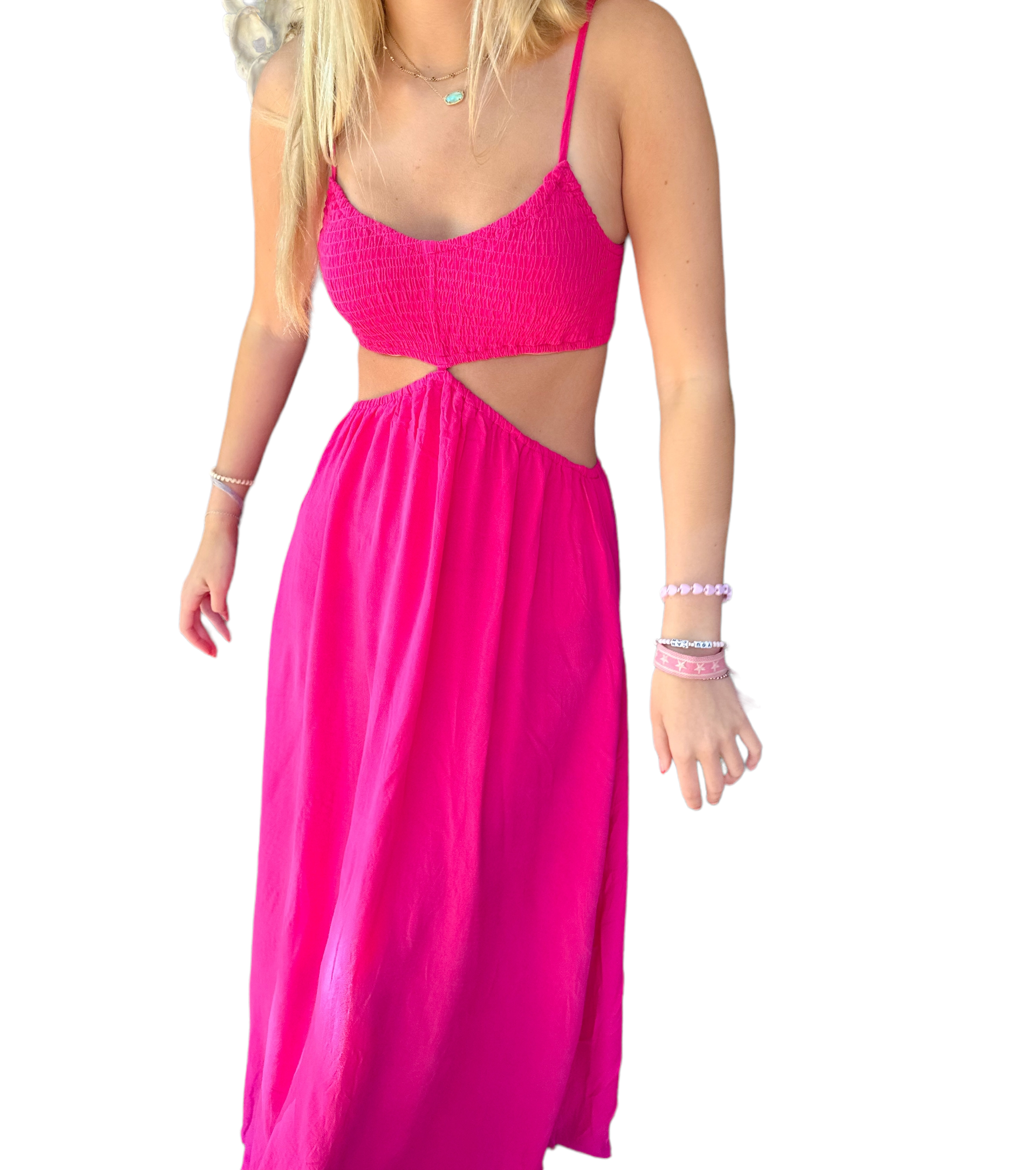 Natalie Hot Pink Cut-Out Maxi Dress with Smocked Sleeves