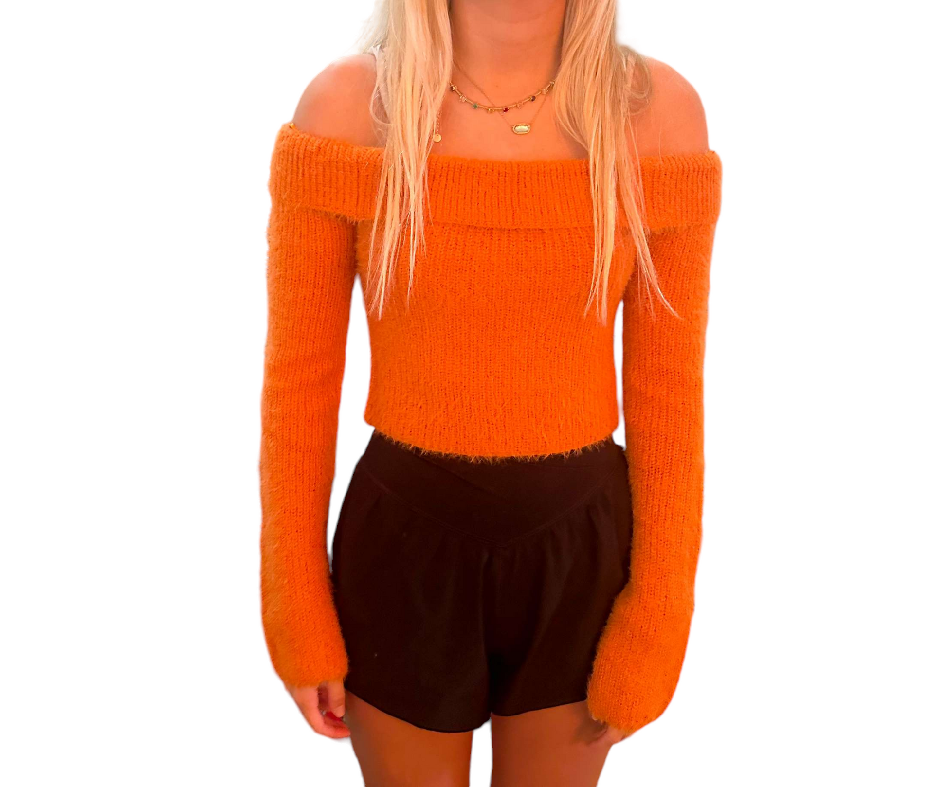 This sweater is not just a clothing item; it's a versatile staple that enhances your fall wardrobe. Whether you're heading to a pumpkin patch, enjoying a bonfire, or simply running errands, the Persimmon Off Shoulder Sweater ensures you stay chic and comfortable all season long.