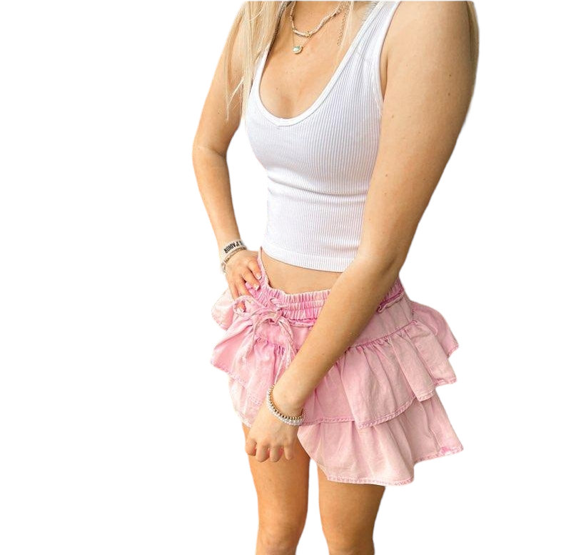 Ruffled Layers Pink Denim Skort