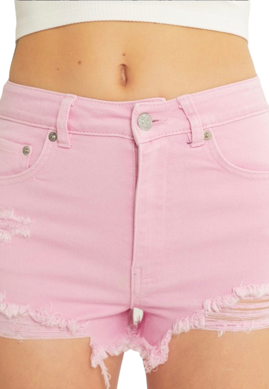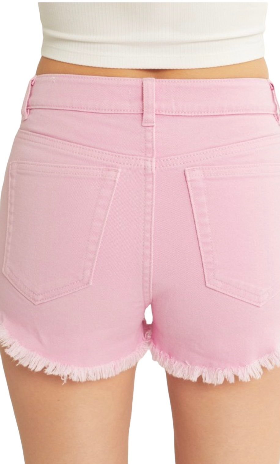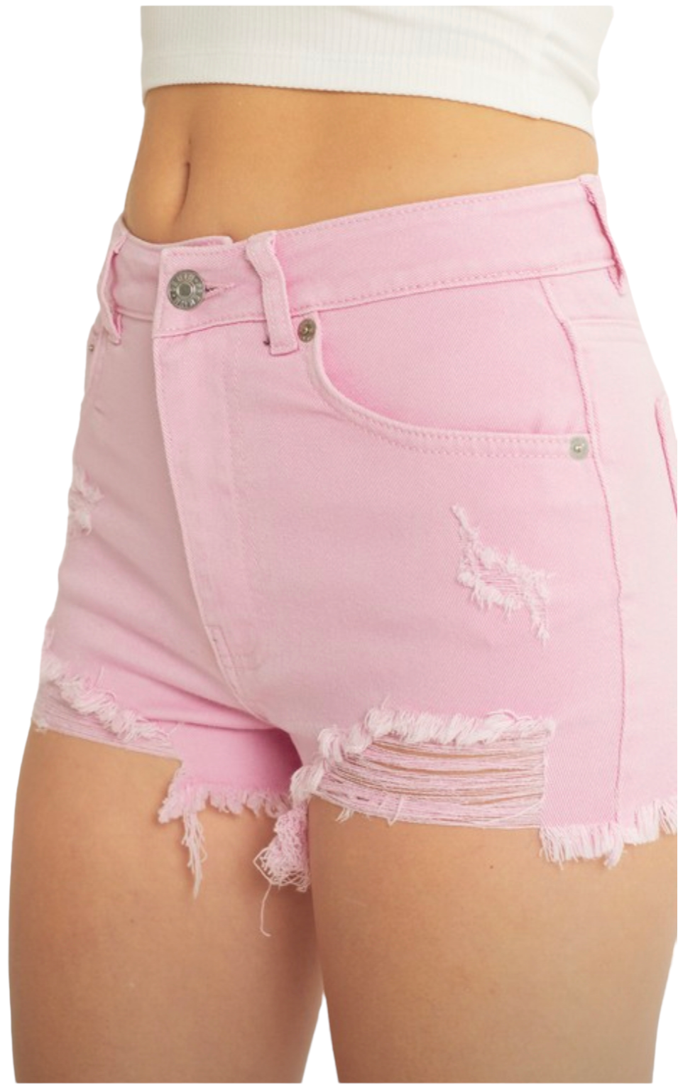 Trendy Pink Frayed High-Waisted Denim Shorts