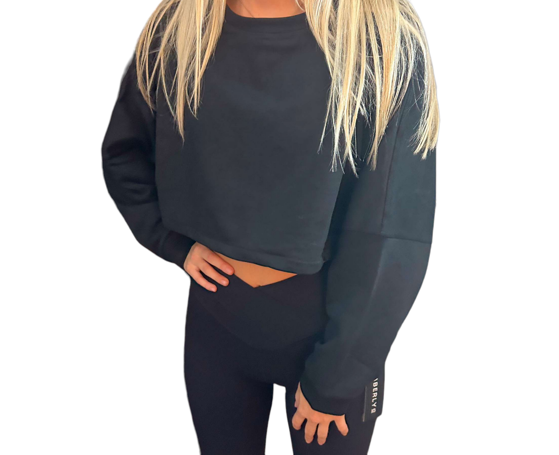 Sadie Charcoal Chic: Cropped Mineral Wash Sweatshirt