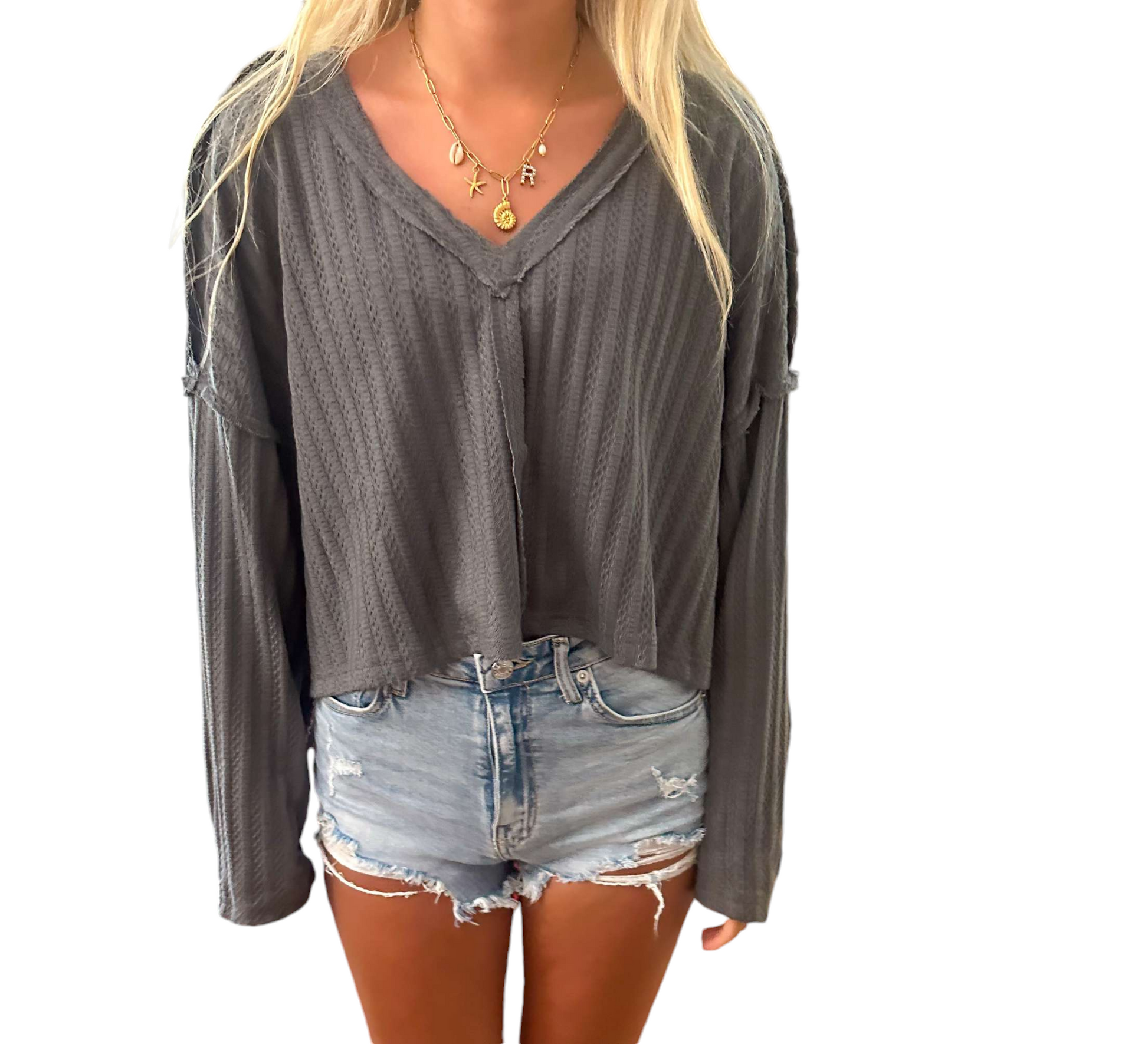 Discover the perfect blend of style and comfort with the Anna Top in Charcoal. This vintage-inspired long sleeve top features a chic drop V-neck design that effortlessly enhances your silhouette.