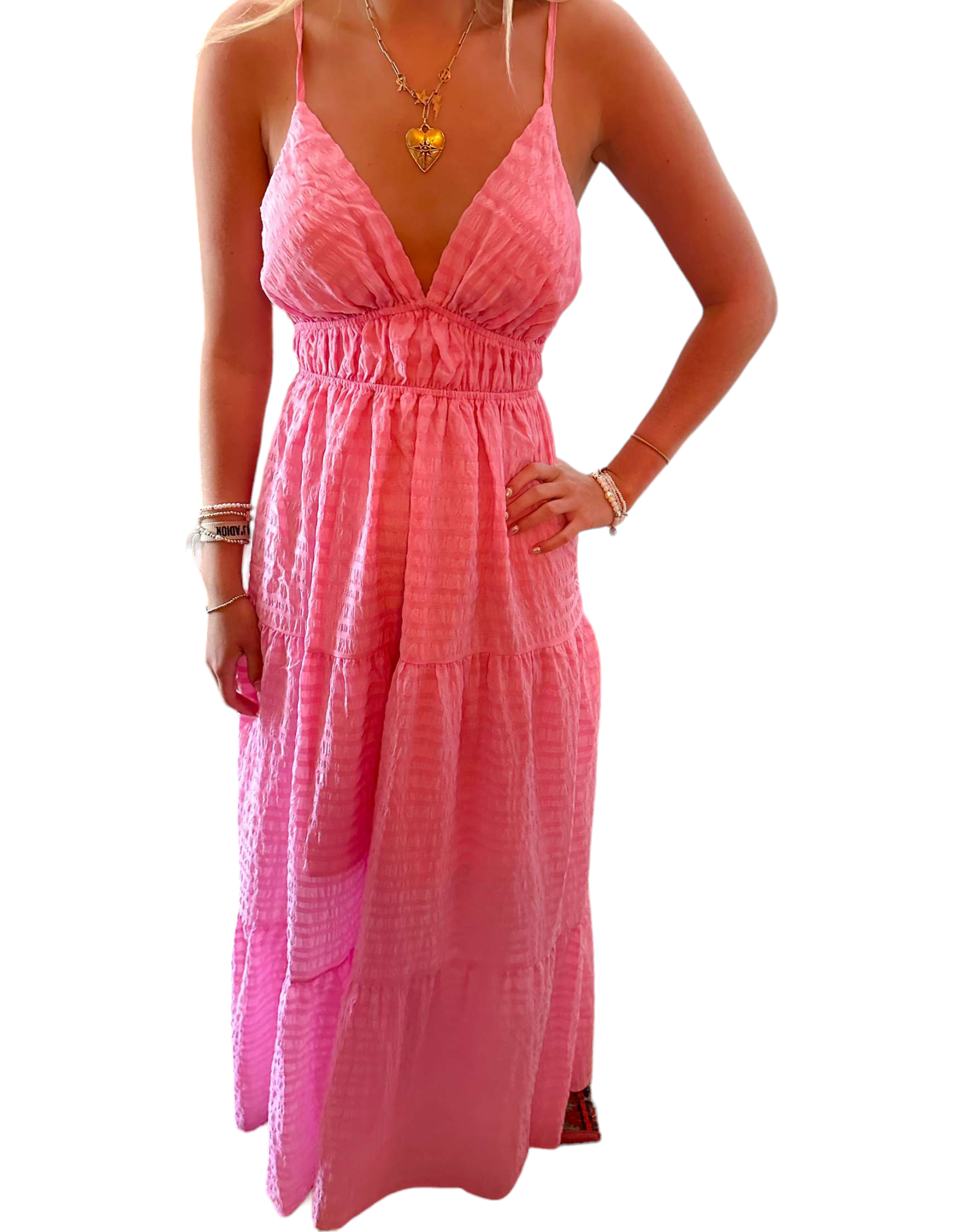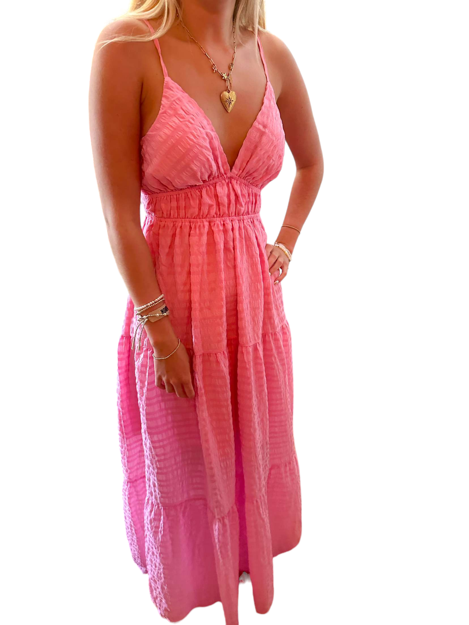 Crafted with high-quality materials, the Taylor Maxi Dress offers both durability and style. Available in a refreshing pink hue, this dress is a must-have addition to your wardrobe. Pair it with your favorite accessories for a complete look that turns heads.