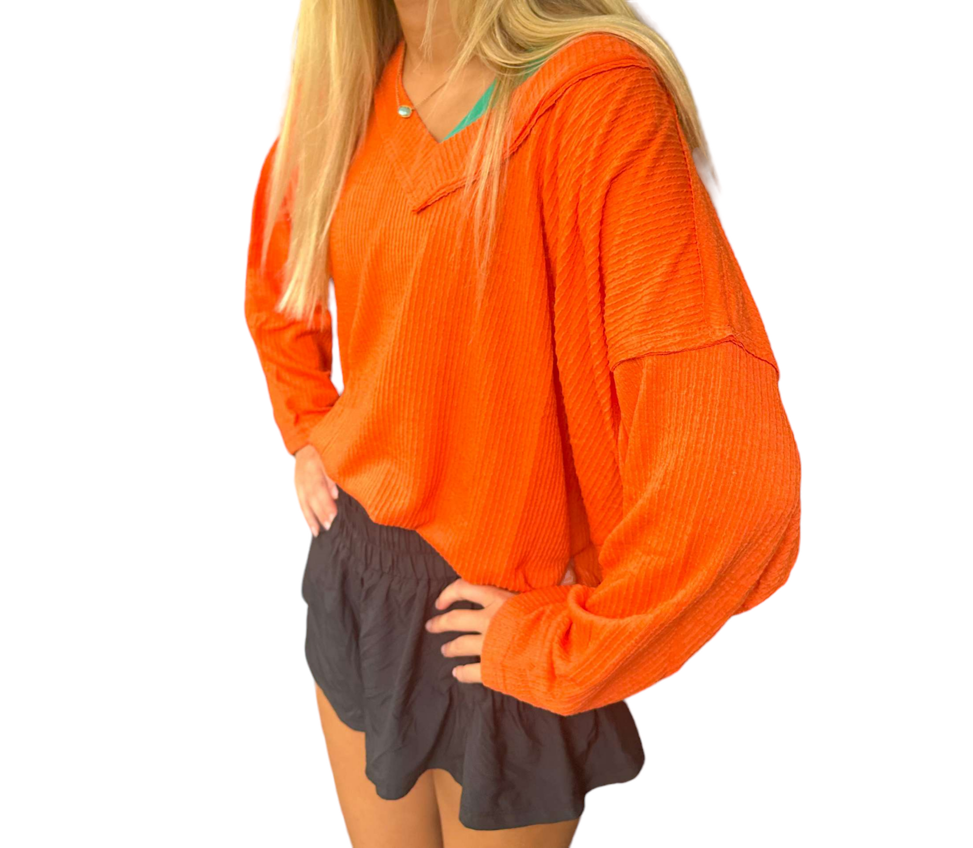 Step into the season with style in our Mandarin Top, a delightful oversized sweater that combines comfort and flair. Designed with a chic v-neck, this piece is perfect for layering and brings a pop of color to your fall wardrobe.